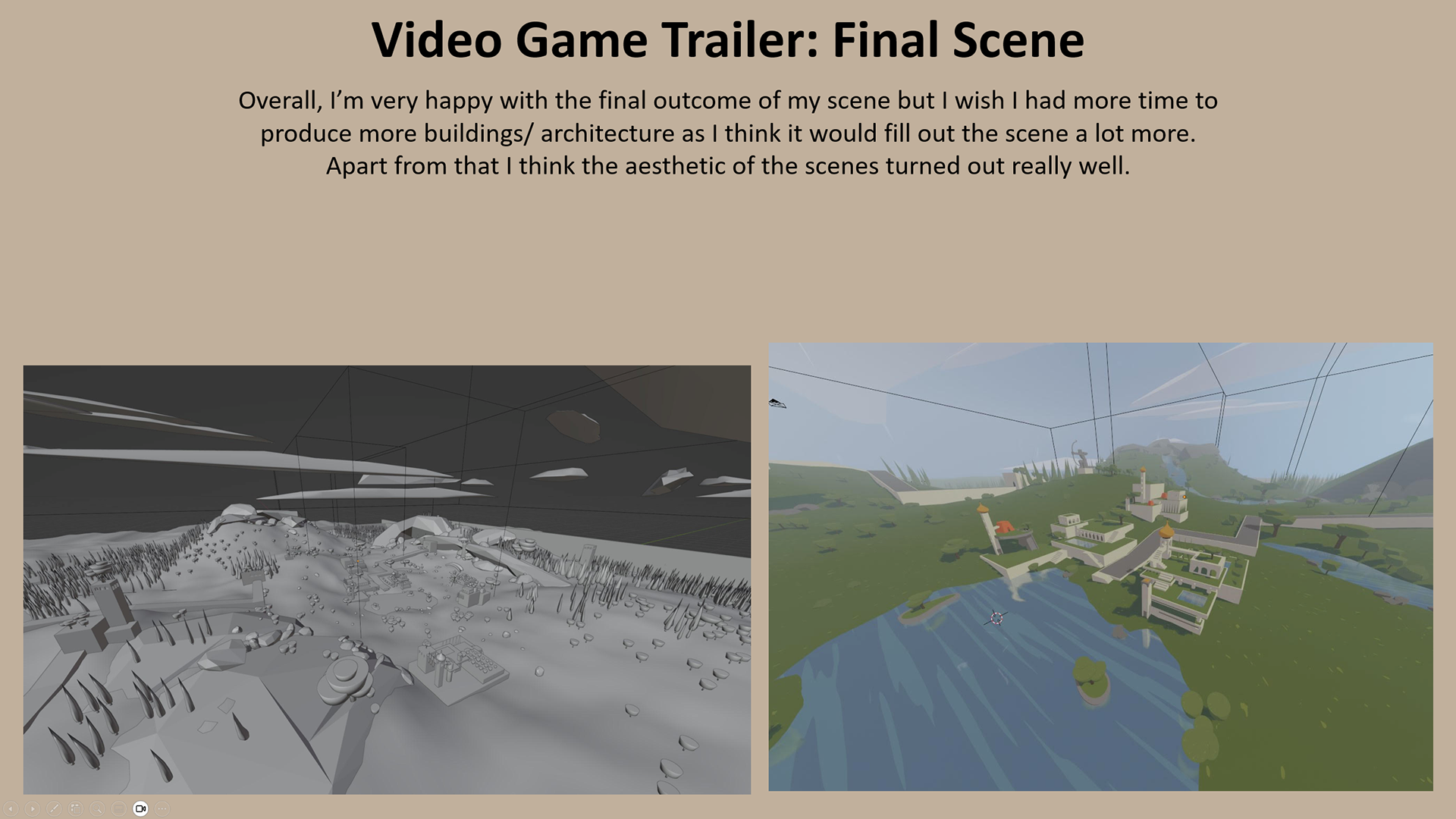 Overall, I'm quite pleased with the outcome, especially given the time frame in which we had to complete it. Given more time I would have loved to refine the trailer even more to make it better synchronise with the music.